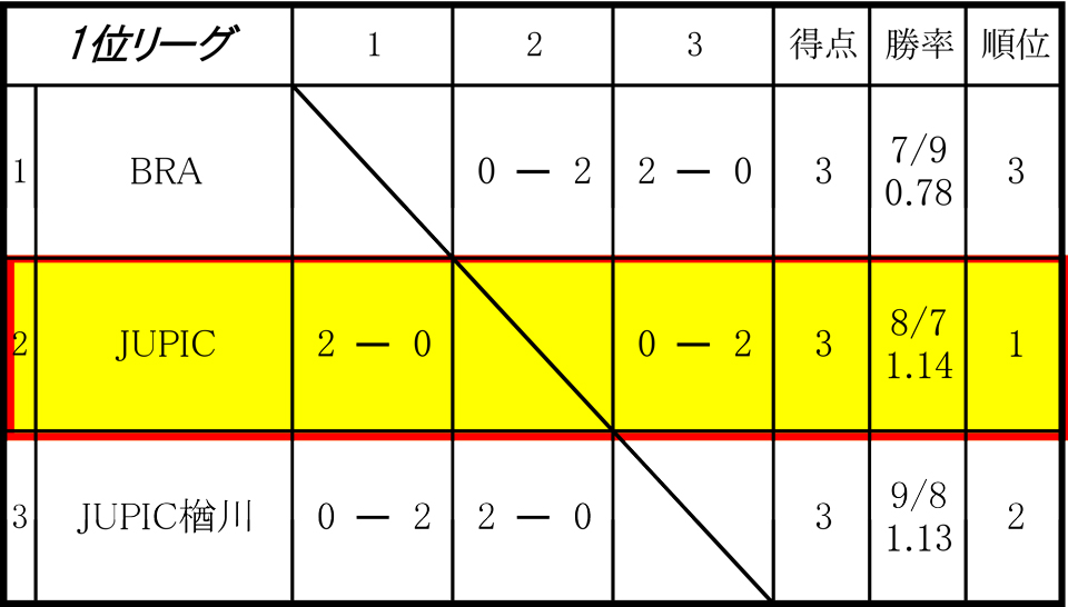 予選Bリーグ1位 決勝リーグ1位 総合1位