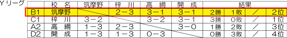 【予選第2 Yリーグ】