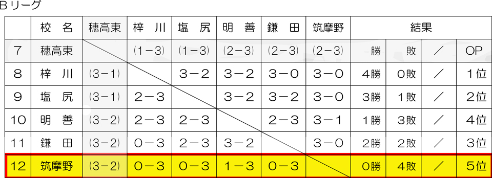 【予選Bリーグ】4敗(1棄権) 5位