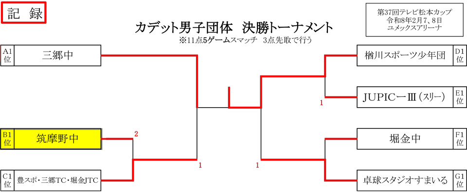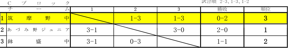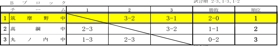 【筑摩野中男子】 予選リーグ 2勝 1位決勝トーナメント 1回戦敗退
